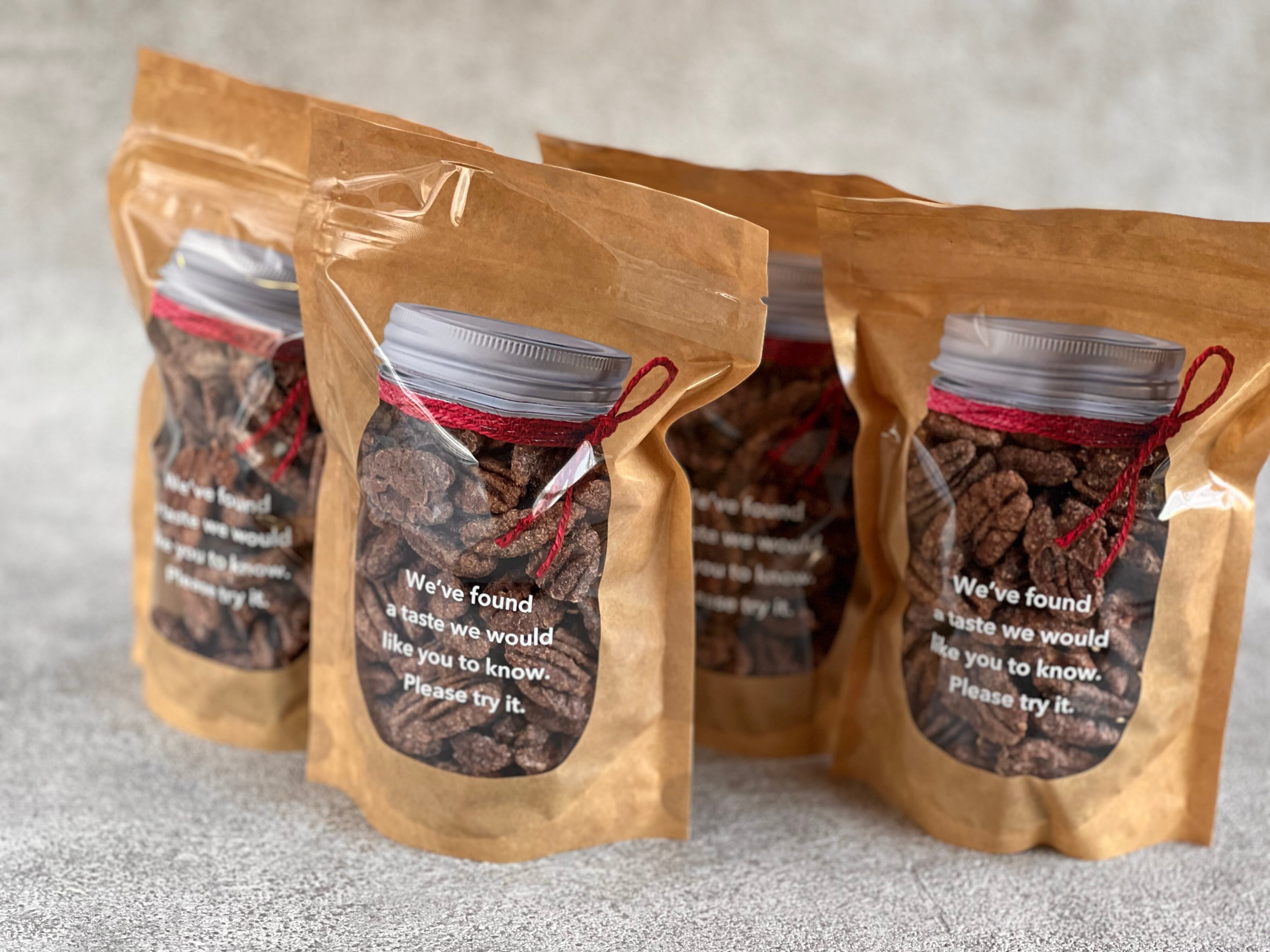 ピーカンナッツをシロップで煮詰め、シナモンをまぶしてカリカリになるまで乾燥焼きにした人気NO.1おつまみ菓子